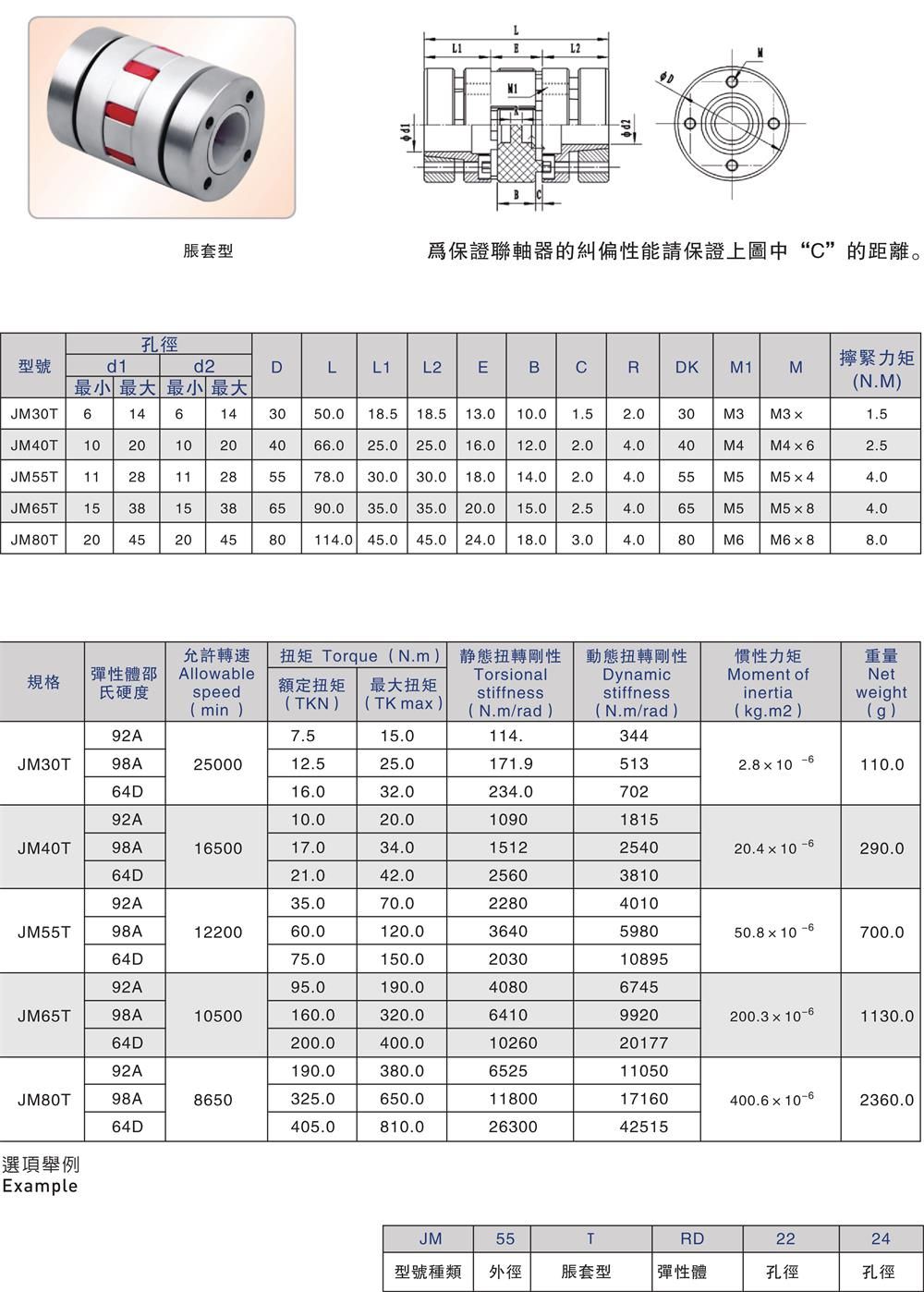 產(chǎn)品名稱:JM-T 雙節(jié)無齒隙彈性體聯(lián)軸器