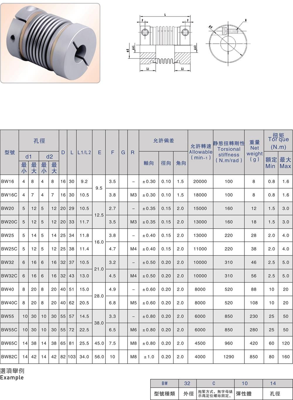 產品名稱:BW/BW-C 波紋管聯軸器